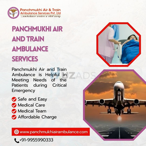 Seller's description Patient safety is always prioritized at Panchmukhi Air and Train Ambulance Service in Patna where we plan to relocate patients without causing any complications. We make sure the journey to the selected destination is organized based on the necessities of the patients and offer end to end comfort all along the way. 800014, Bihar, भारत